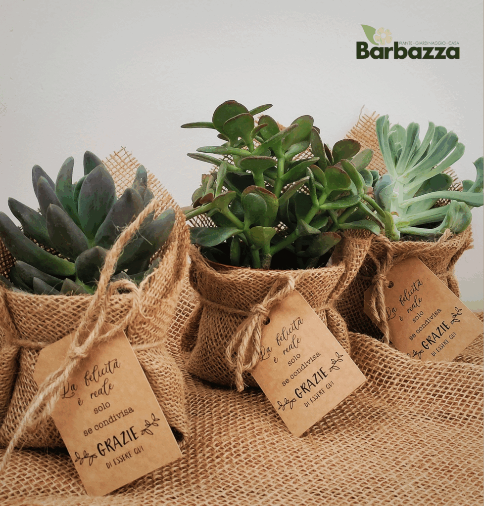 Per chi preferisce una bomboniera green e desidera consegnare nelle mani dei propri invitati qualcosa di vivo, come simbolo di cura e amore, una pianta potrà essere il regalo ideale! Le possibilità sono tante, in ogni stagione: una profumatissima pianta aromatica da poter poi utilizzare in cucina; una piccola pianta grassa, di facile manutenzione, da tenere sulla scrivania; un bonsai, piccolo albero ricco di fascino; una piantina di olivo, simbolo di pace e tanto altro ancora.