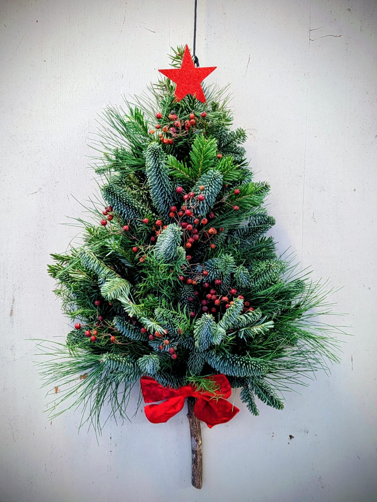 Ecco un’originale alternativa alla classica corona fuoriporta: un simpaticissimo alberello di natale, realizzato artigianalmente con fil di ferro, rami di pino e decori a tua scelta, da appendere sul  portone d’ingresso. Un benvenuto speciale per tutti i tuoi ospiti!